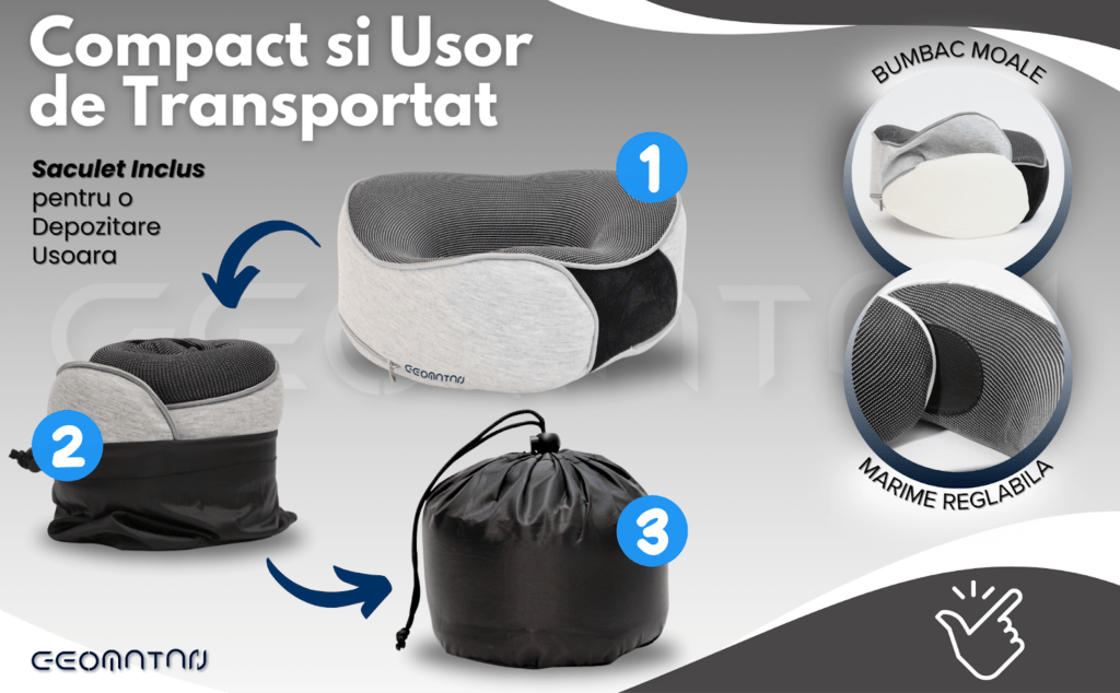 Perna Ortopedica Premium, din Spuma cu Memorie, GEOMATAN®, Suport Ergonomic pentru Gat si Coloana, ideala pentru Alinierea Cervicala, Reducerea Durerilor si Tensiunii, Somn Odihnitor si Confortabil, Material Hipoalergenic, pentru Somn Fara Sforait